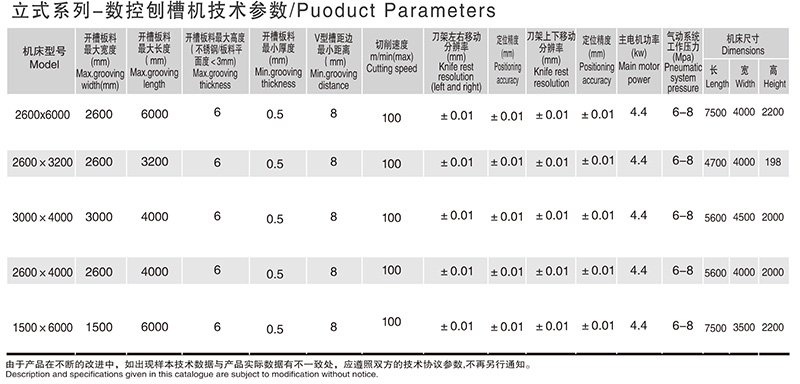 機床性能與特點: 刨槽機是傳統刨槽機的升級產品。 采用框架式結構,高強度螺栓連接,整體剛性好,變形小。 該系列橫梁固不動,工件由后送料機構送進,工作臺面采用碳素 工具制作,高頻表面淬火后硬度達55-60HRC(普通臺面<30HRC) 使工作臺硬度遠大于不銹鋼硬度,解決了傳統機型因工作臺面硬度低出現溝痕的現象,保證工作臺面平面度≤+003徹底解決 工作臺面變形降低 V型槽精度的問題,延長了設備的使用壽命。 工作臺前后均設有托料裝置,防止加工過程中板料劃傷。