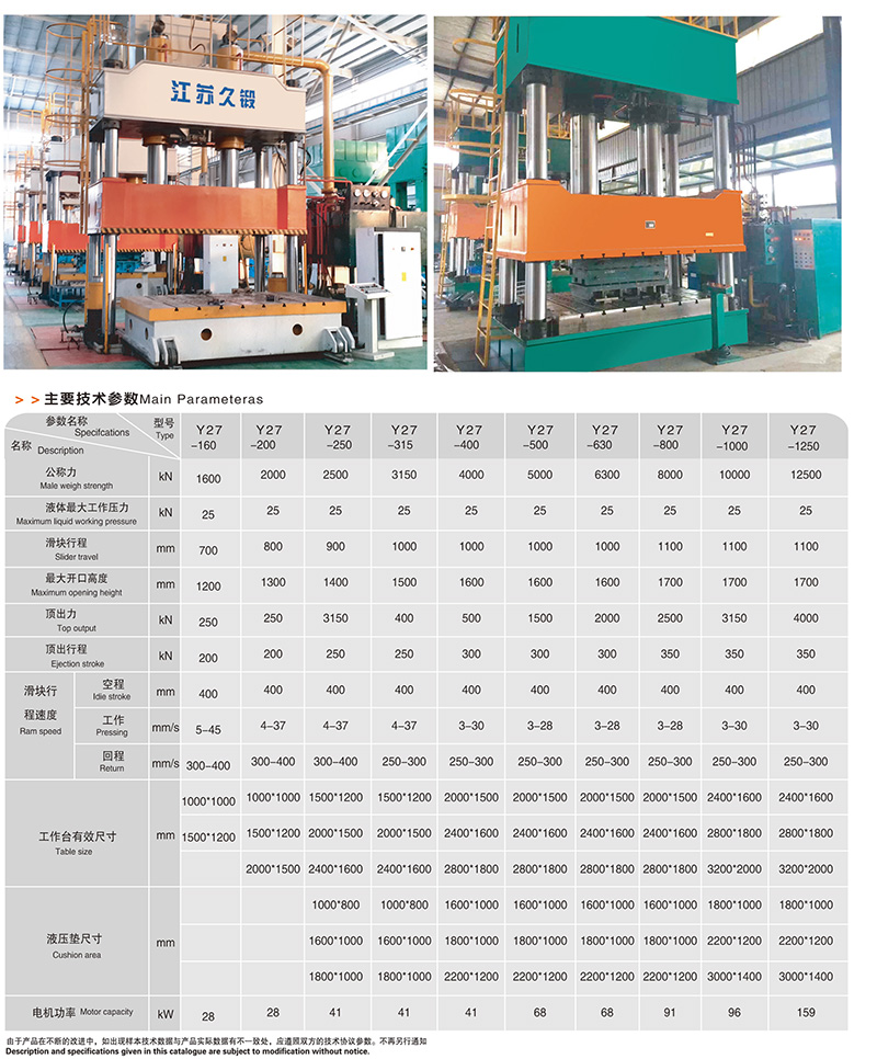 Y27系列四柱式、框 架式單動薄板拉伸液壓機